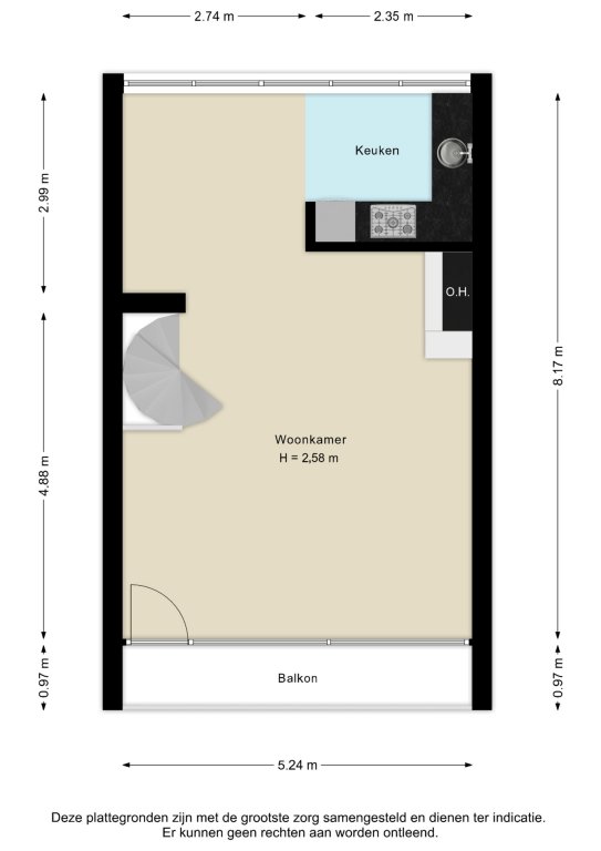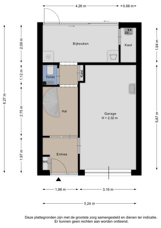 Alle door ons kantoor verstrekte informatie omtrent onroerende zaken, moet beschouwd worden als een uitnodiging om in onderhandeling te treden, en is geheel vrijblijvend! Alle vermelde maten en afmetingen zijn slechts bij benadering. Aan deze beperkte info kunnen geen rechten worden ontleend. Indien in enige documentatie of op enige website informatie staat die niet overeen komt met de werkelijkheid, dan geldt de feitelijke situatie waarin de woning zich bevindt, zoals koper deze tijdens de bezichtiging heeft kunnen waarnemen, en wordt de woning in deze feitelijke situatie/staat verkocht. Een (eventueel) bijgevoegde plattegrond dient uitsluitend als globale indicatie/visualisatie. Hieraan kunnen uitdrukkelijk geen rechten worden ontleend.