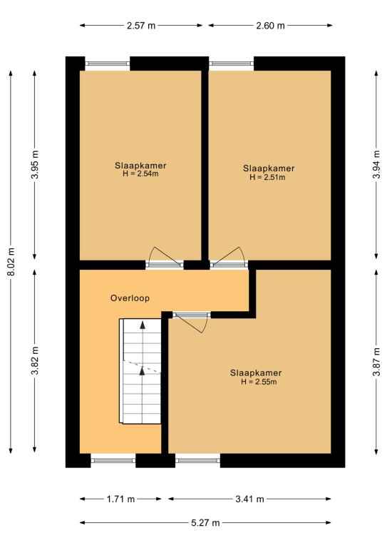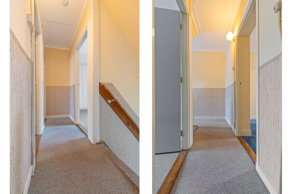 De overloop biedt toegang tot de badkamer en drie slaapkamers (resp. 13, 10 en 10m²).