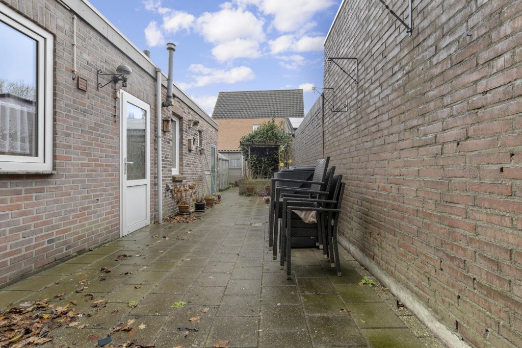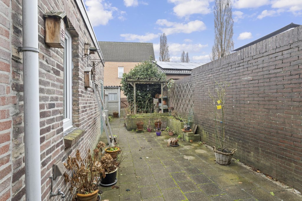 De volledig betegelde tuin is gelegen op het noorden.