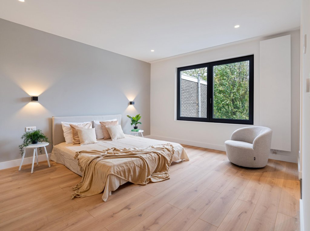 - Veel lichtinval door glazen deuren en grote raampartijen;