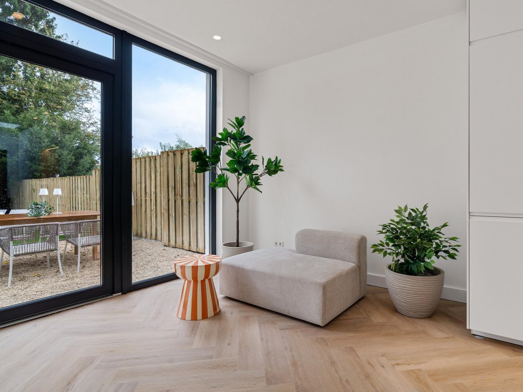 - Veel lichtinval door glazen deuren en grote raampartijen;