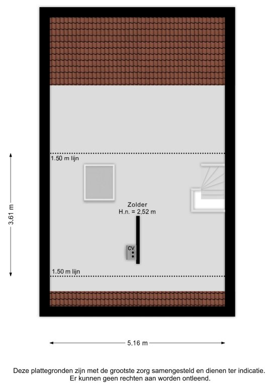 Via een vaste trap bereikt u de ruime zolderverdieping met de opstelplaats van de cv-installatie (huur, 2016), de mechanische ventilatie-unit en de witgoedaansluiting.