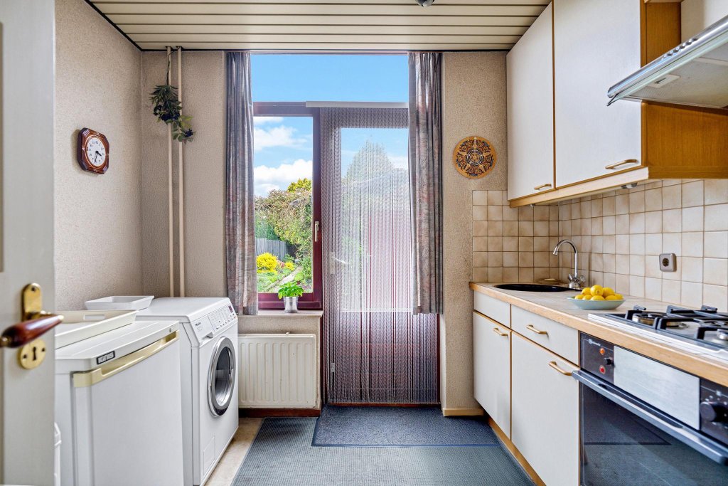 Vanuit de keuken heeft u toegang tot de diepe tuin (27.5 meter). Deze tuin biedt volop zon en privacy, is voorzien van een stenen berging en heeft een praktische achteringang.