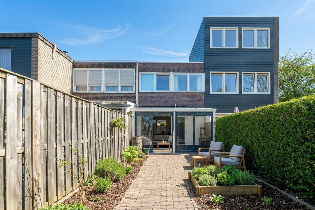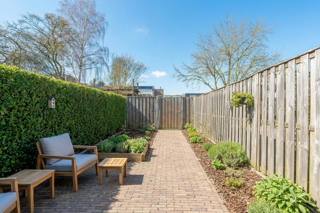 De achtertuin is voorzien van een terras met overkapping, waar u heerlijk buiten kunt zitten en gazon. Daarnaast beschikt de tuin over een achteruitgang, wat handig is voor toegang met fietsen of tuinonderhoud.