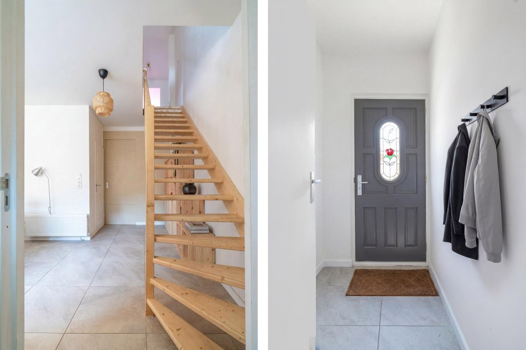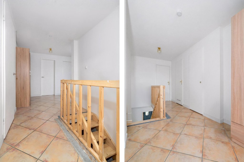 Via de ruime overloop heeft u toegang tot drie slaapkamers, elk voorzien van rolluiken, wat zorgt voor extra comfort en privacy.