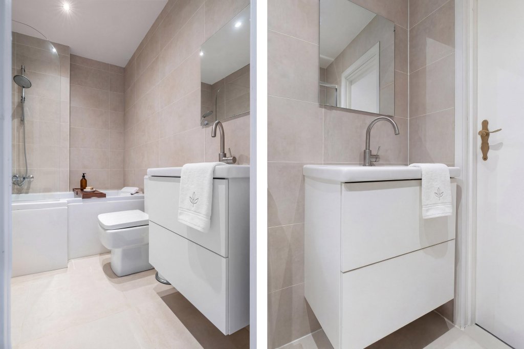 Verder vindt u op deze verdieping de nieuwe badkamer, die is uitgerust met een combinatie van douche en ligbad, een hangcloset, een wastafelmeubel en wasmachine aansluiting. Daarnaast is er een extra berging voor extra opslagruimte.