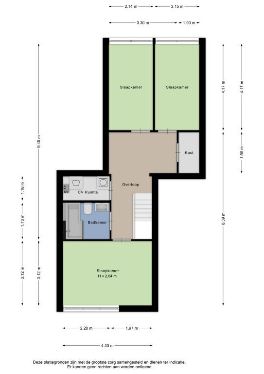 - Drie slaapkamers;