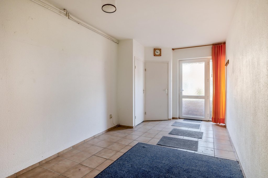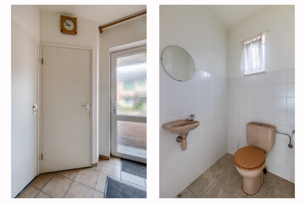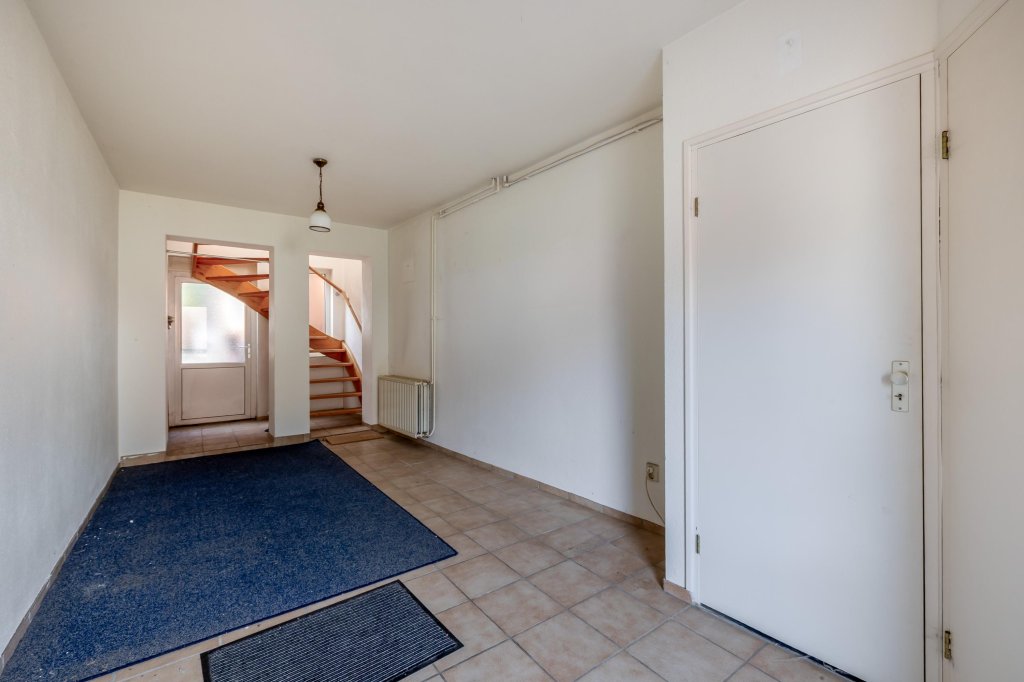 Via de overdekte entree bereikt u de royale, volledig betegelde hal met meterkast en toegang tot de deels betegelde toiletruimte met staand toilet en fonteintje. Vanuit de hal leidt de trap naar de eerste verdieping.