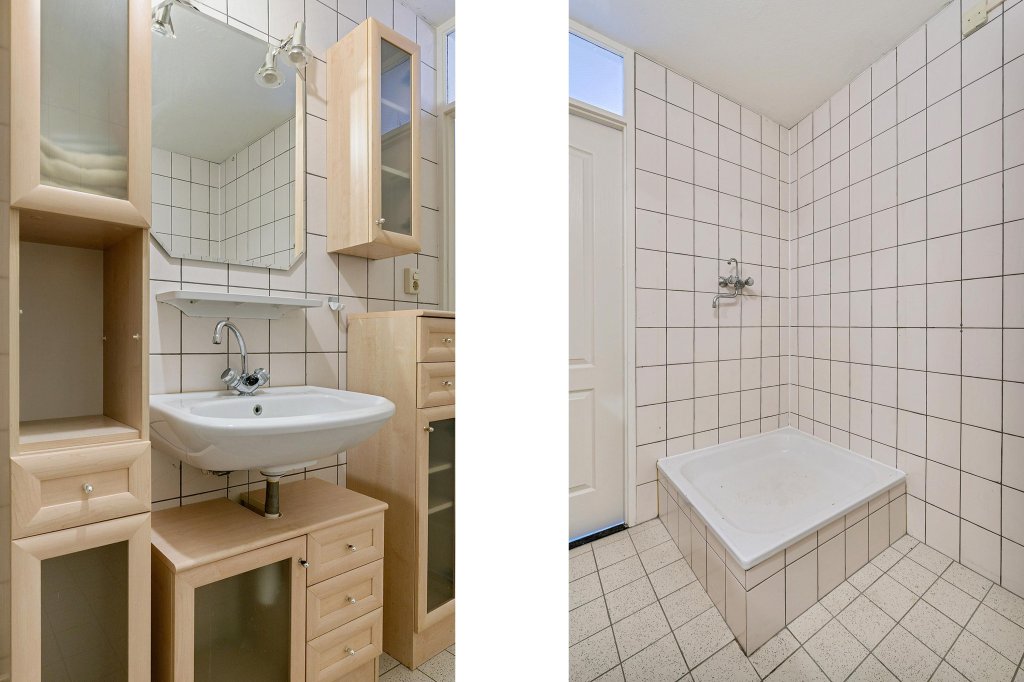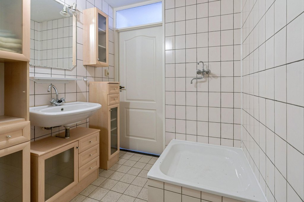 Overloop met toegang tot 3 slaapkamers en badkamer. Nette badkamer voorzien van wastafel, douche en badmeubel.