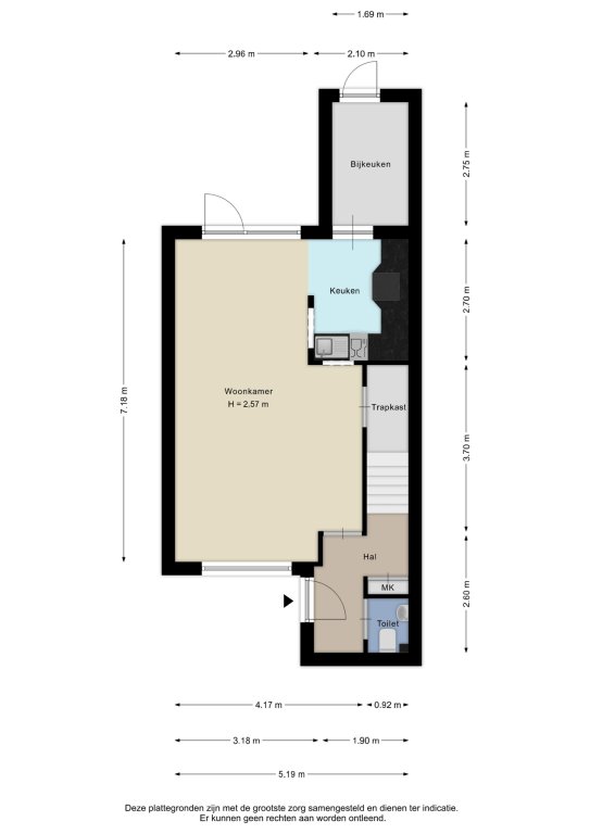 Alle door ons kantoor verstrekte informatie omtrent onroerende zaken, moet beschouwd worden als een uitnodiging om in onderhandeling te treden, en is geheel vrijblijvend! Alle vermelde maten en afmetingen zijn slechts bij benadering. Aan deze beperkte info kunnen geen rechten worden ontleend. Indien in enige documentatie of op enige website informatie staat die niet overeen komt met de werkelijkheid, dan geldt de feitelijke situatie waarin de woning zich bevindt, zoals koper deze tijdens de bezichtiging heeft kunnen waarnemen, en wordt de woning in deze feitelijke situatie/staat verkocht. Een (eventueel) bijgevoegde plattegrond dient uitsluitend als globale indicatie/visualisatie. Hieraan kunnen uitdrukkelijk geen rechten worden ontleend.