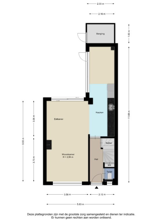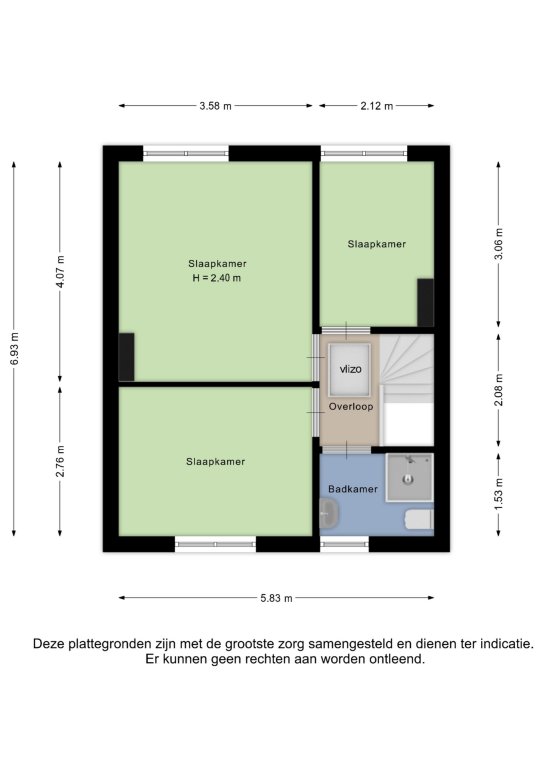 Alle door ons kantoor verstrekte informatie omtrent onroerende zaken, moet beschouwd worden als een uitnodiging om in onderhandeling te treden, en is geheel vrijblijvend! Alle vermelde maten en afmetingen zijn slechts bij benadering. Aan deze beperkte informatie kunnen geen rechten worden ontleend. Indien in enige documentatie of op enige website informatie staat die niet overeen komt met de werkelijkheid, dan geldt de feitelijke situatie waarin de woning zich bevindt, zoals koper deze tijdens de bezichtiging heeft kunnen waarnemen, en wordt de woning in deze feitelijke situatie/staat verkocht. Een (eventueel) bijgevoegde plattegrond dient uitsluitend als globale indicatie/visualisatie. Hieraan kunnen uitdrukkelijk geen rechten worden ontleend.