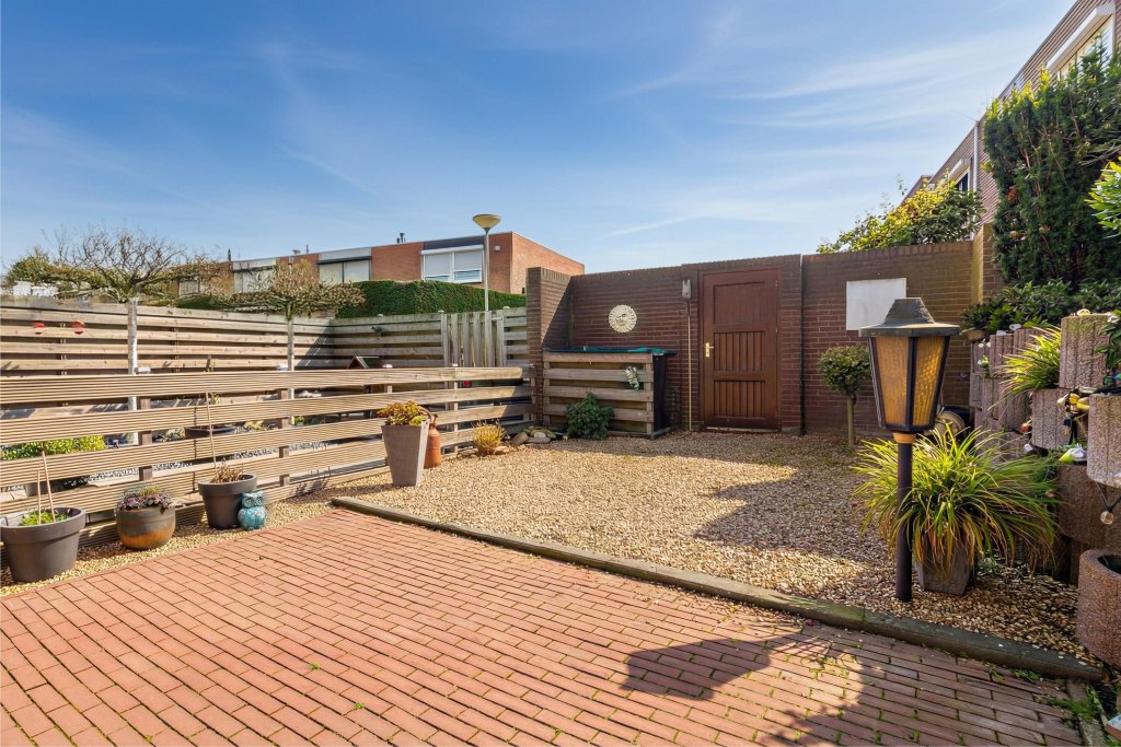 De achtertuin is gunstig gelegen op het zuiden, heeft een oppervlakte van circa 45 m² en is voorzien van een achterom, terras en borders. De voortuin biedt plek voor twee auto’s.