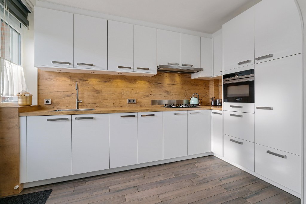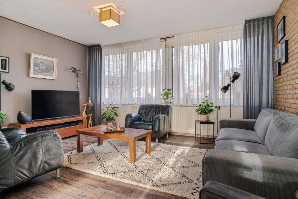 Overloop met toegang tot de living. De doorzonwoonkamer is licht en biedt voldoende ruimte voor een comfortabele zithoek en eethoek voorzien van nette laminaatvloer. Aansluitend bevindt zich de keuken met de navolgende apparatuur: 4-pits gaskookplaat, afzuigkap, koelkast en combi-oven. Vanuit de woonverdieping is er directe toegang tot de tuin middels loopdeur.