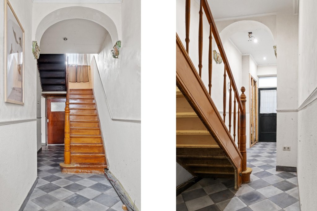Via de voortuin betreed je de woning. Binnenkomst hal, betegeld, biedt toegang tot de meterkast, trap naar de eerste verdieping, de eetkamer en de keuken.
