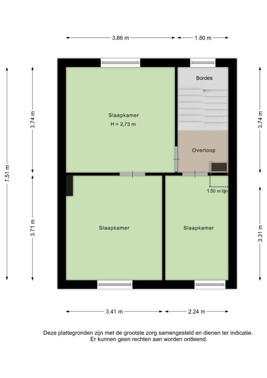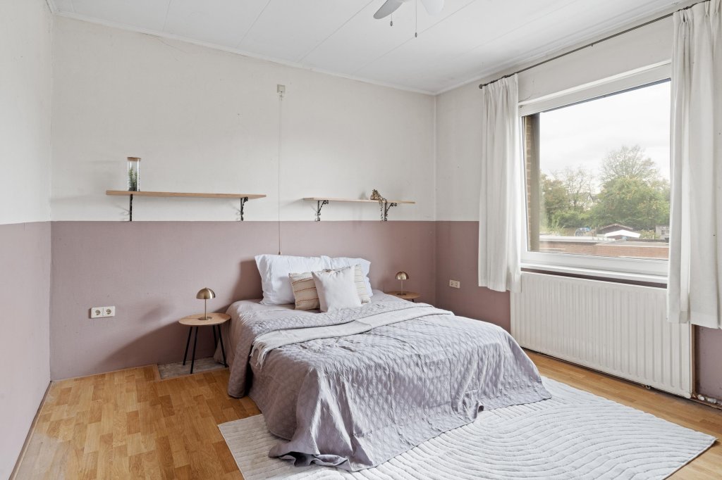 De overloop op de eerste verdieping biedt toegang tot drie slaapkamers, allemaal voorzien van een laminaatvloer. Via een vaste trap bereik je de zolderverdieping.