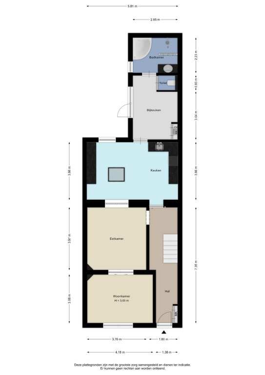 Alle door ons kantoor verstrekte informatie omtrent onroerende zaken, moet beschouwd worden als een uitnodiging om in onderhandeling te treden, en is geheel vrijblijvend! Alle vermelde maten en afmetingen zijn slechts bij benadering. Aan deze beperkte info kunnen geen rechten worden ontleend. Indien in enige documentatie of op enige website informatie staat die niet overeen komt met de werkelijkheid, dan geldt de feitelijke situatie waarin de woning zich bevindt, zoals koper deze tijdens de bezichtiging heeft kunnen waarnemen, en wordt de woning in deze feitelijke situatie/staat verkocht. Een (eventueel) bijgevoegde plattegrond dient uitsluitend als globale indicatie/visualisatie. Hieraan kunnen uitdrukkelijk geen rechten worden ontleend.