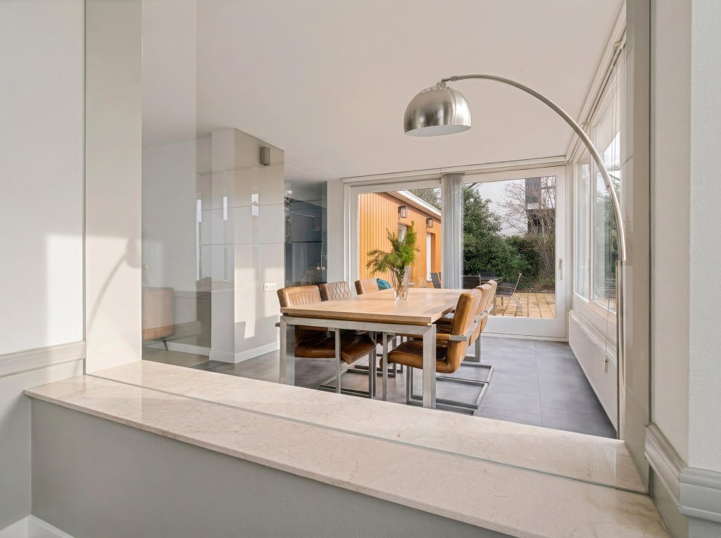 De woning wordt gekenmerkt door grote raampartijen, een prettige lichtinval en een fraaie, privacy volle tuin. Een ideale plek voor wie ruimte, rust en comfort zoekt.