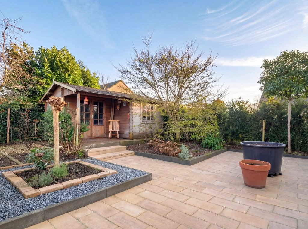 De royale achtertuin is een heerlijke combinatie van bestrating en groen. Het terras nodigt uit om in alle rust te genieten van het buitenleven, omringd door volwassen beplanting die zorgt voor optimale privacy. Vanuit de tuin is tevens de garage bereikbaar. Ook de voortuin is keurig aangelegd met bestrating en diverse struiken en beplanting.