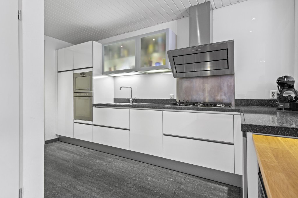 Aansluitend bevindt zich de bijkeuken, alwaar aansluitmogelijkheid wasapparatuur en toegang tot de inpandige garage (ca. 7.20x 2.95m) met elektrische sectionaalpoort.