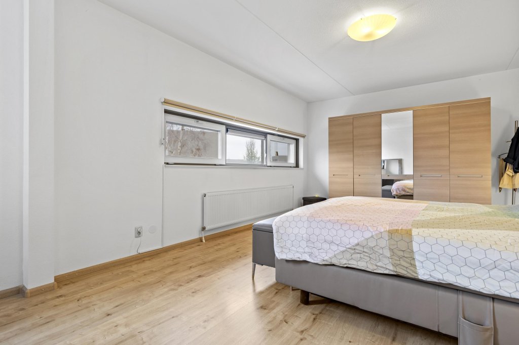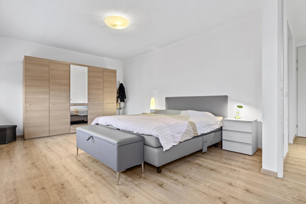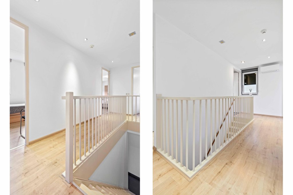 Overloop met laminaatvloer en airconditioning (2022). Drie slaapkamers voorzien van laminaatvloeren, respectievelijk: