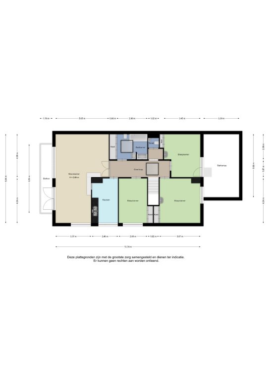 Alle door ons kantoor verstrekte informatie omtrent onroerende zaken, moet beschouwd worden als een uitnodiging om in onderhandeling te treden, en is geheel vrijblijvend! Alle vermelde maten en afmetingen zijn slechts bij benadering. Aan deze beperkte info kunnen geen rechten worden ontleend. Indien in enige documentatie of op enige website informatie staat die niet overeen komt met de werkelijkheid, dan geldt de feitelijke situatie waarin de woning zich bevindt, zoals koper deze tijdens de bezichtiging heeft kunnen waarnemen, en wordt de woning in deze feitelijke situatie/staat verkocht. Een (eventueel) bijgevoegde plattegrond dient uitsluitend als globale indicatie/visualisatie. Hieraan kunnen uitdrukkelijk geen rechten worden ontleend.