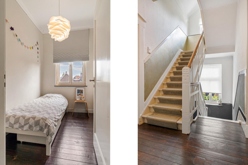 Middels een bordestrap is de totaal gerenoveerde tweede verdieping bereikbaar.