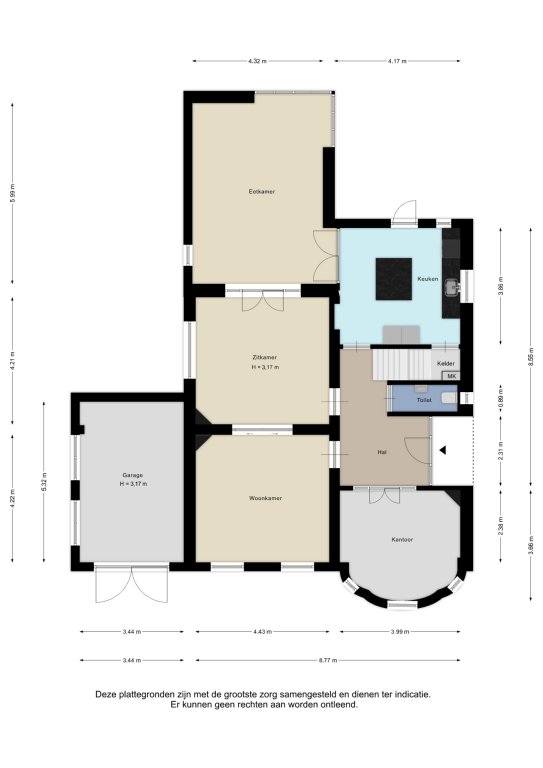 Alle door ons kantoor verstrekte informatie omtrent onroerende zaken, moet beschouwd worden als een uitnodiging om in onderhandeling te treden, en is geheel vrijblijvend! Alle vermelde maten en afmetingen zijn slechts bij benadering. Aan deze beperkte info kunnen geen rechten worden ontleend. Indien in enige documentatie of op enige website informatie staat die niet overeen komt met de werkelijkheid, dan geldt de feitelijke situatie waarin de woning zich bevindt, zoals koper deze tijdens de bezichtiging heeft kunnen waarnemen, en wordt de woning in deze feitelijke situatie/staat verkocht. Een (eventueel) bijgevoegde plattegrond dient uitsluitend als globale indicatie/visualisatie. Hieraan kunnen uitdrukkelijk geen rechten worden ontleend.