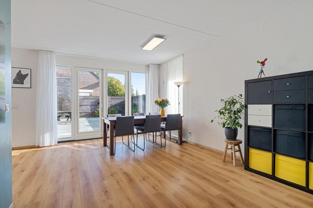 De royale woonkamer is heerlijk licht dankzij de grote raampartijen en is voorzien van een elektrisch rolluik voor extra comfort. De woonkamer biedt ruimte aan zowel een gezellige zithoek als een eetgedeelte, waar openslaande deuren u uitnodigen naar de achtertuin te stappen.