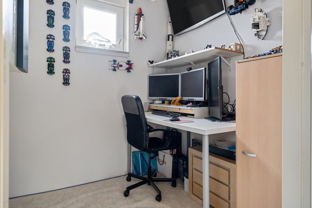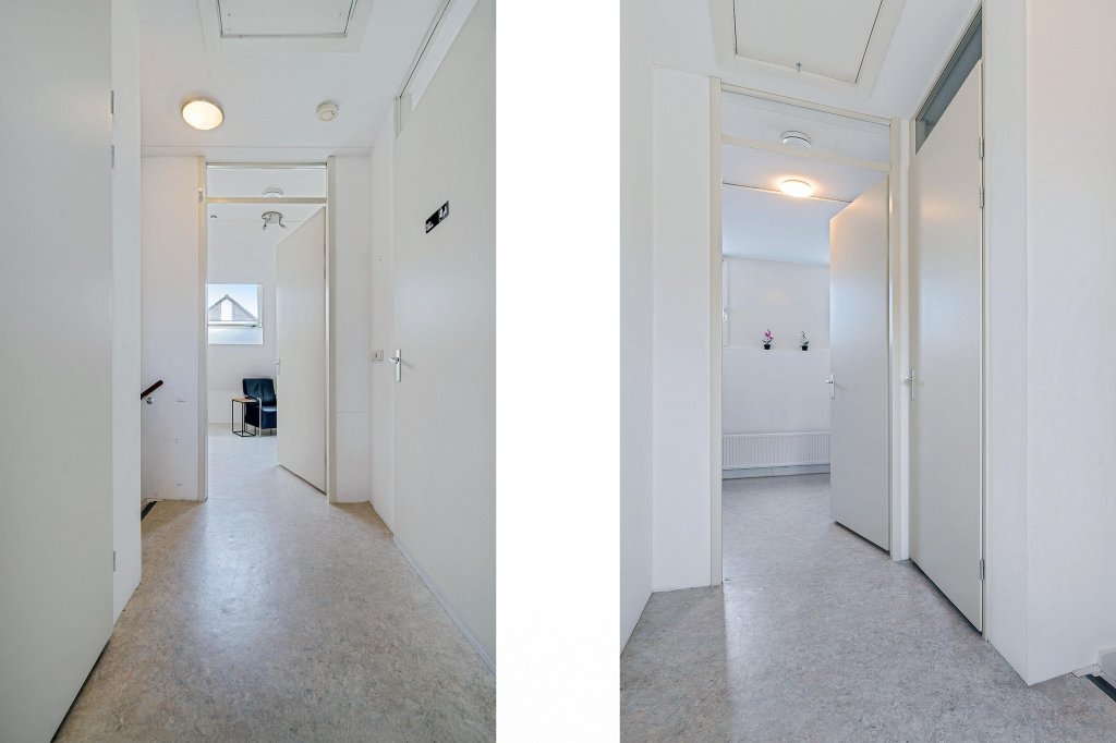 Op de eerste verdieping bevinden zich twee ruime slaapkamers, die naar wens kunnen worden ingericht als logeerkamer, kantoor of hobbyruimte. Daarnaast is er een technische ruimte met de cv-installatie en extra bergruimte.