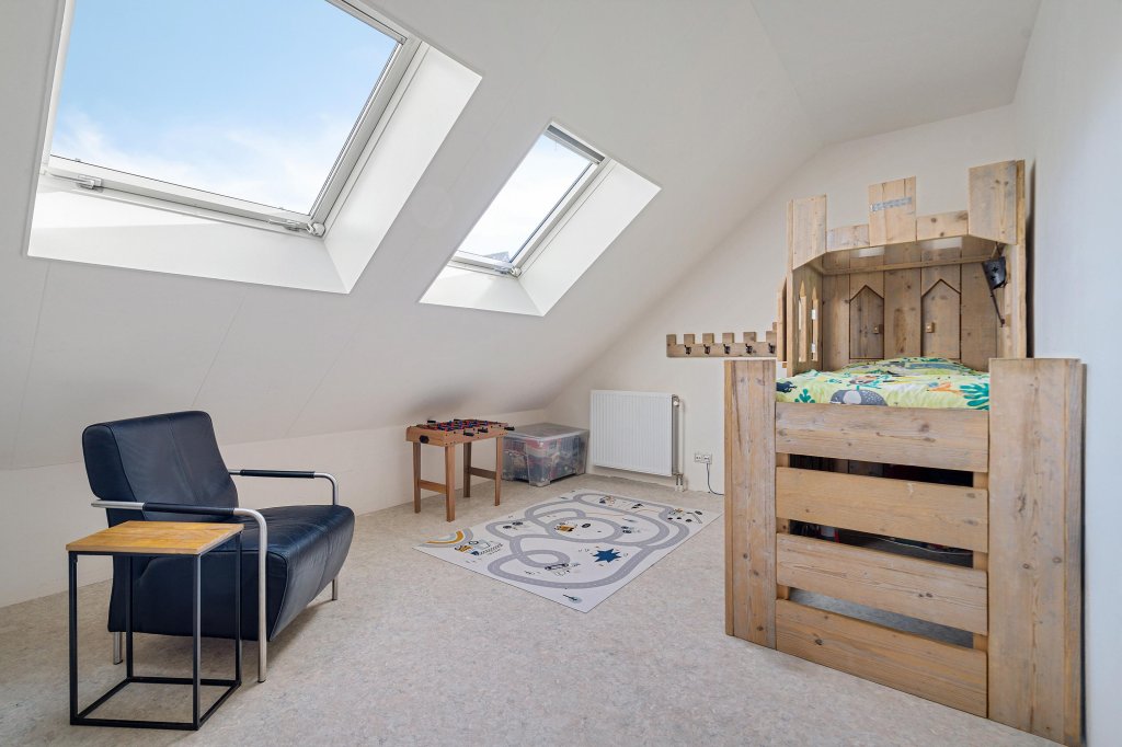 Via een vlizotrap bereikt u de praktische bergzolder – ideaal voor het opbergen van seizoensspullen of andere zaken die u niet dagelijks nodig heeft.