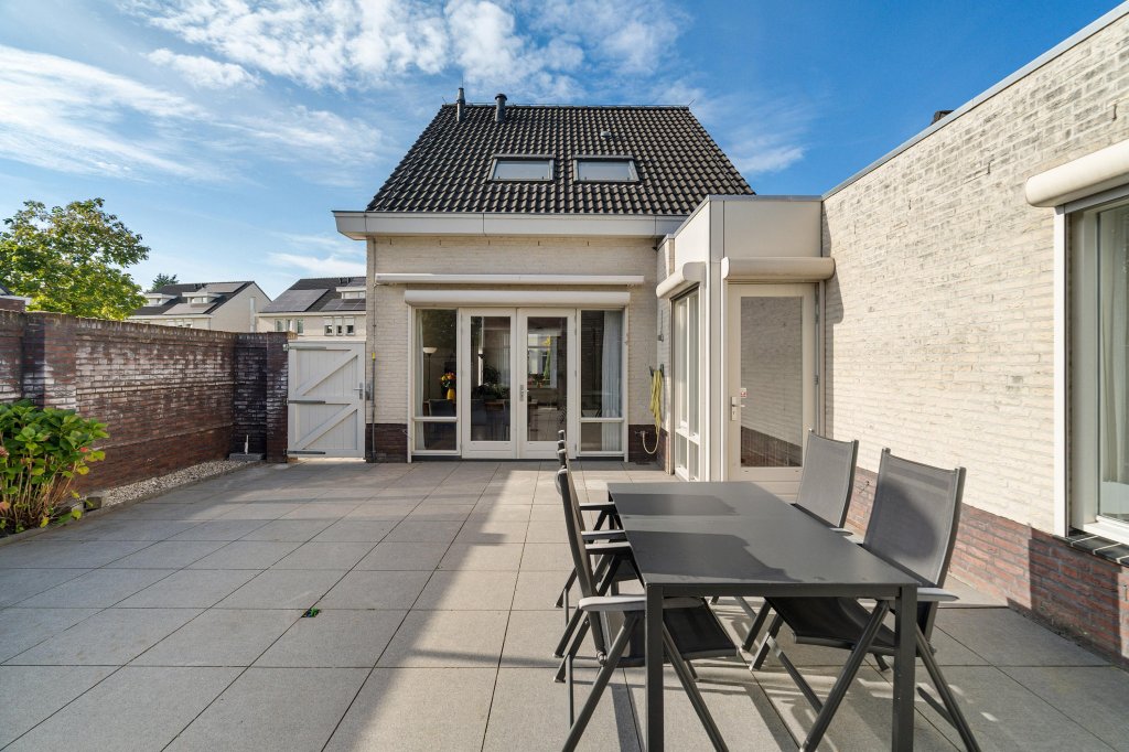 De onderhoudsvriendelijke achtertuin is een fijne plek om te ontspannen of gezellig te barbecueën in de zomer. Dankzij de gunstige ligging geniet u hier van veel privacy.