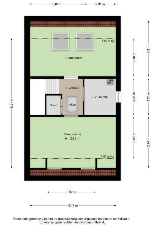 De maten van alle ruimtes vindt u terug in de plattegronden!