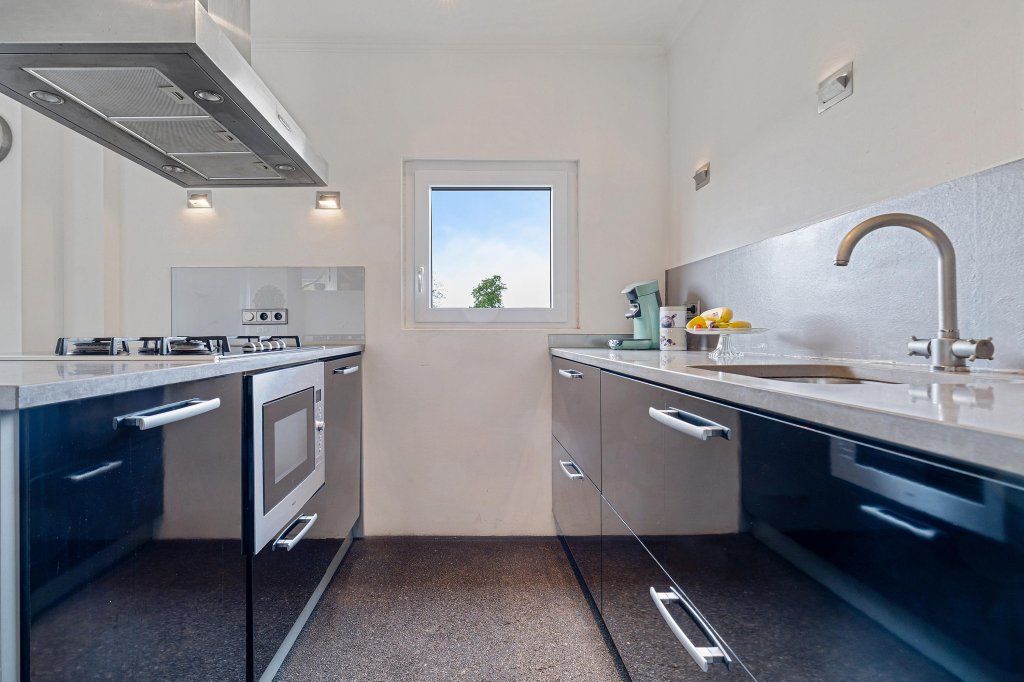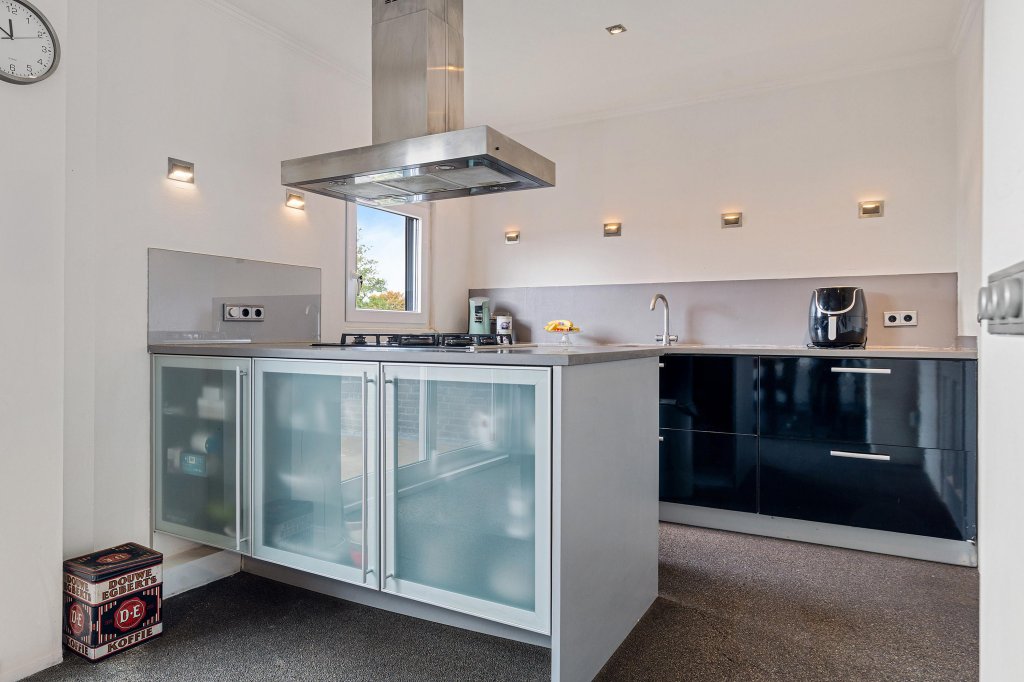 Entree/hal met toegang tot de toiletruimte, trapopgang naar de verdieping, trapafgang naar de kelder en de keuken. De open keuken, die is ingericht met een praktische opstelling en voorzien van diverse inbouwapparatuur, waaronder: 5-pits gaskookplaat, afzuigkap, vaatwasser, combi-oven en koelkast. Aangrenzend de woonkamer met veel lichtinval en een schuifpui met toegang tot het terras.