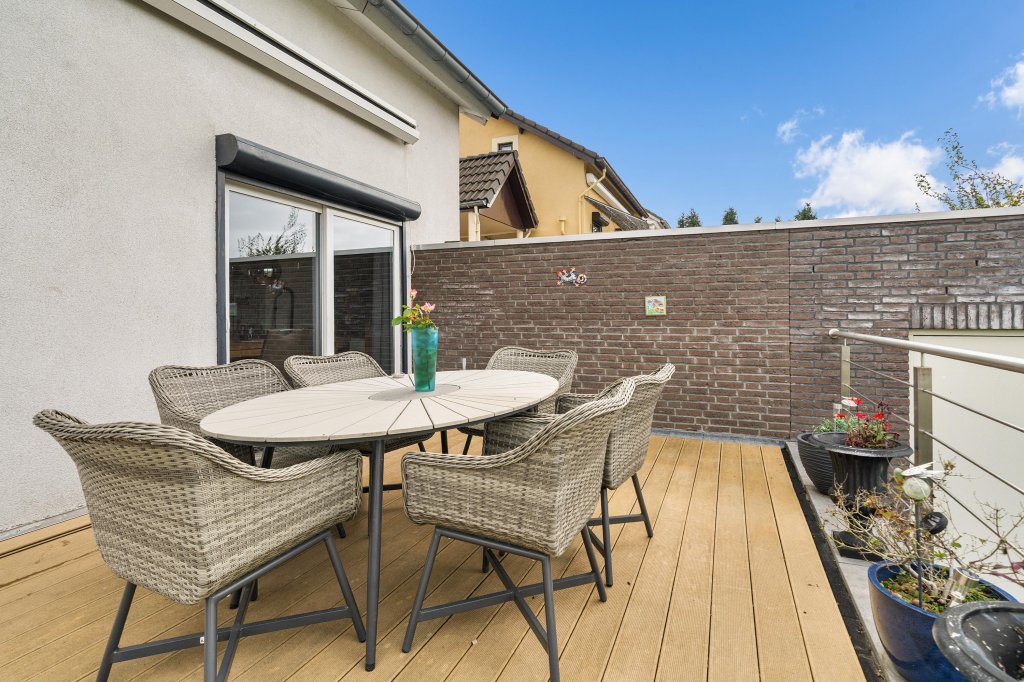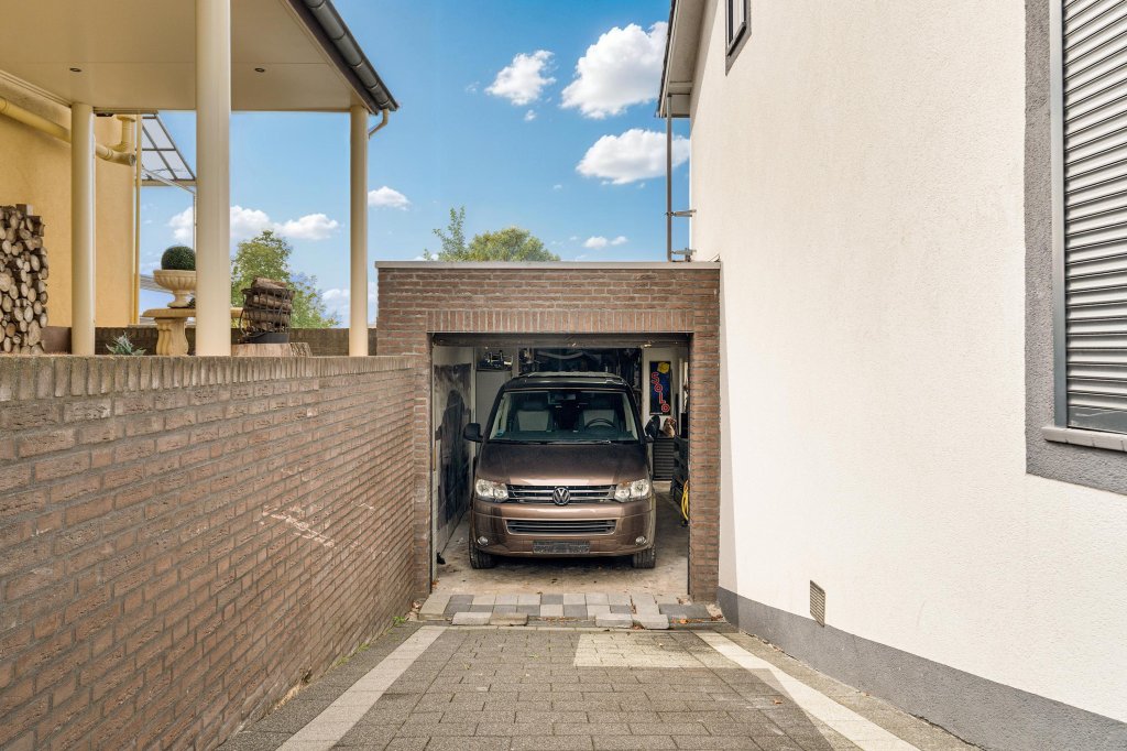 De achtertuin is gelegen op het Zuidwesten en is ingedeeld in twee niveau’s. Op woonkamerniveau bevindt zich een ruim terras met elektrisch zonnescherm en op kelderniveau bevindt zich een gazon, zijingang en heeft men toegang tot de riante garage (ca. 46 m²). Geniet in de tuin van een vrije ligging aan de achterzijde.