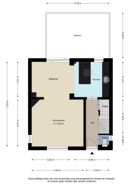 Alle door ons kantoor verstrekte informatie omtrent onroerende zaken, moet beschouwd worden als een uitnodiging om in onderhandeling te treden, en is geheel vrijblijvend! Alle vermelde maten en afmetingen zijn slechts bij benadering. Aan deze beperkte info kunnen geen rechten worden ontleend. Indien in enige documentatie of op enige website informatie staat die niet overeen komt met de werkelijkheid, dan geldt de feitelijke situatie waarin de woning zich bevindt, zoals koper deze tijdens de bezichtiging heeft kunnen waarnemen, en wordt de woning in deze feitelijke situatie/staat verkocht. Een (eventueel) bijgevoegde plattegrond dient uitsluitend als globale indicatie/visualisatie. Hieraan kunnen uitdrukkelijk geen rechten worden ontleend.