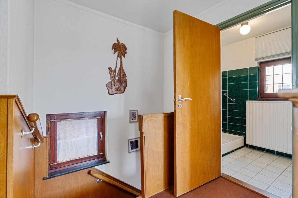 De overloop biedt toegang tot drie slaapkamers, de badkamer en de vlizo naar de zolder.