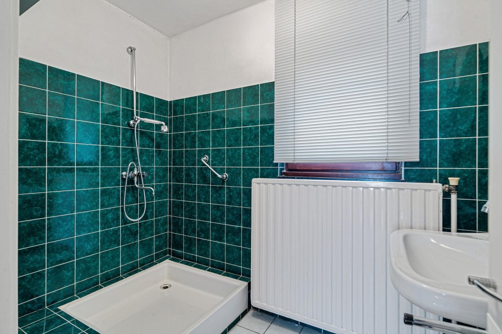 De badkamer is voorzien van een inloopdouche en een wastafel.