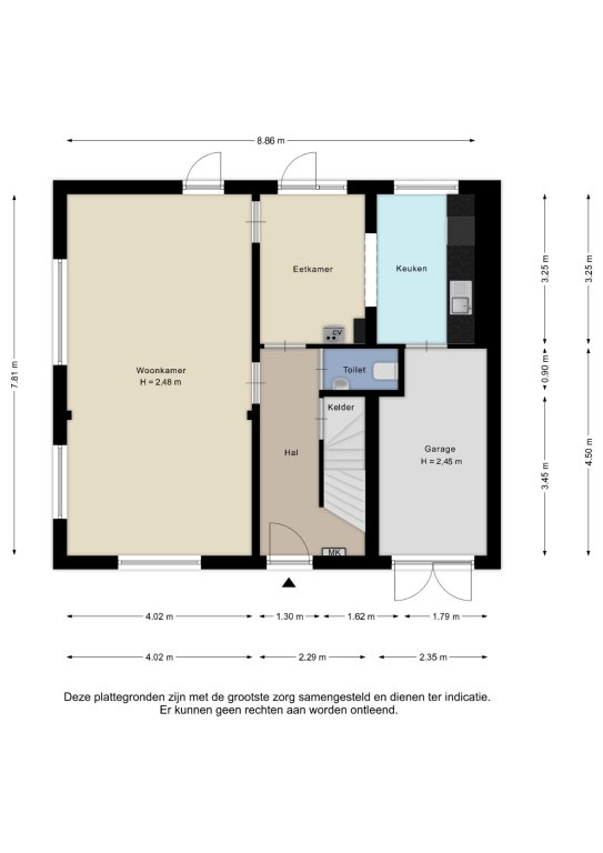 Alle door ons kantoor verstrekte informatie omtrent onroerende zaken, moet beschouwd worden als een uitnodiging om in onderhandeling te treden, en is geheel vrijblijvend! Alle vermelde maten en afmetingen zijn slechts bij benadering. Aan deze beperkte informatie kunnen geen rechten worden ontleend. Indien in enige documentatie of op enige website informatie staat die niet overeen komt met de werkelijkheid, dan geldt de feitelijke situatie waarin de woning zich bevindt, zoals koper deze tijdens de bezichtiging heeft kunnen waarnemen, en wordt de woning in deze feitelijke situatie/staat verkocht. Een (eventueel) bijgevoegde plattegrond dient uitsluitend als globale indicatie/visualisatie. Hieraan kunnen uitdrukkelijk geen rechten worden ontleend.