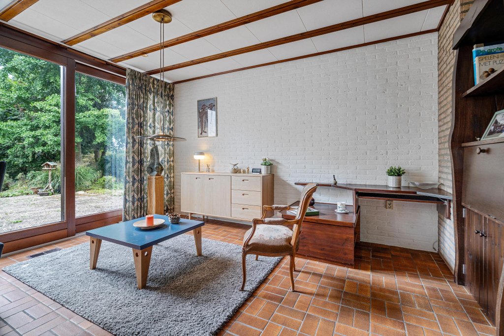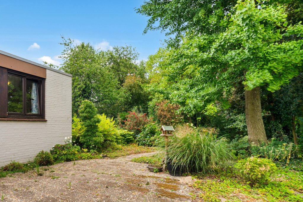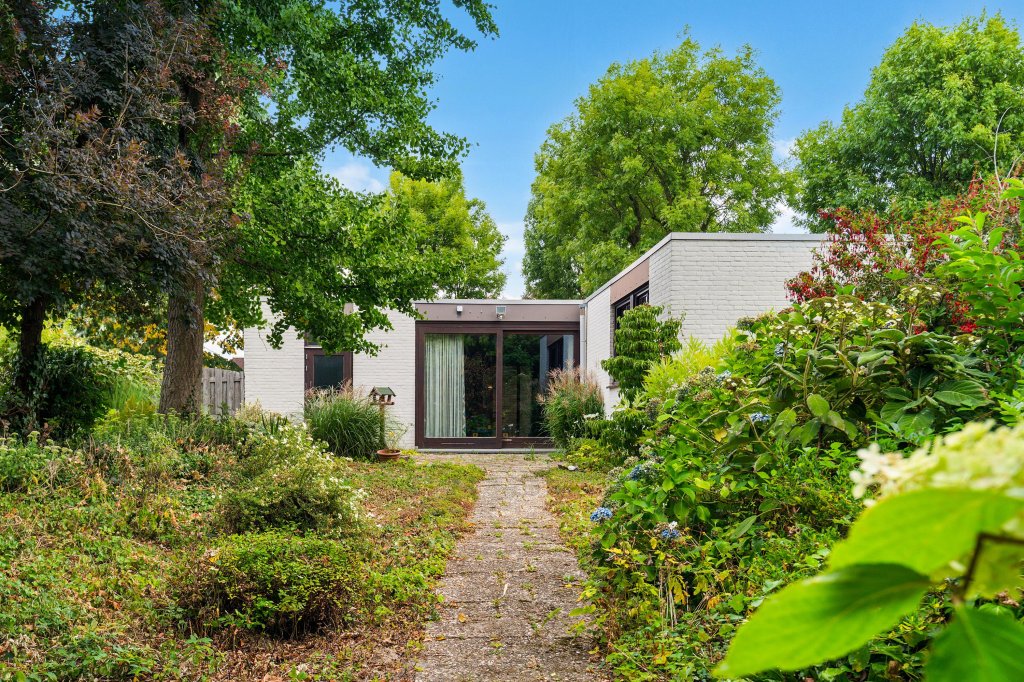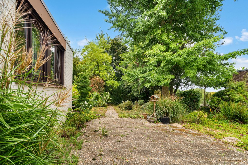 De woning beschikt over een verrassend ruime achtertuin die veel privacy biedt. Het voorste gedeelte is betegeld en een mooi pad loopt door de tuin richting het groen. Er zijn volop bloemen en beplanting aanwezig, maar de tuin vraagt om wat aandacht om weer volledig tot bloei te komen. Dankzij het royale perceel zijn er talloze mogelijkheden om hier een prachtig buitenparadijs te creëren. De tuin is zowel bereikbaar via de woonkamer, de garage als via de zijpoort naast de woning.