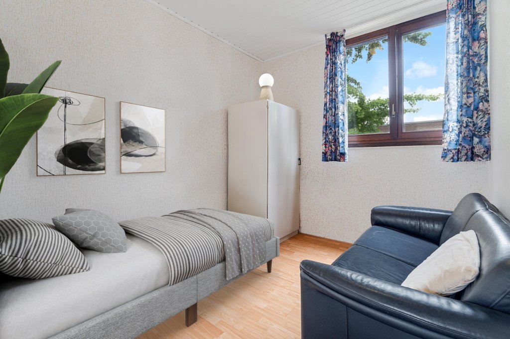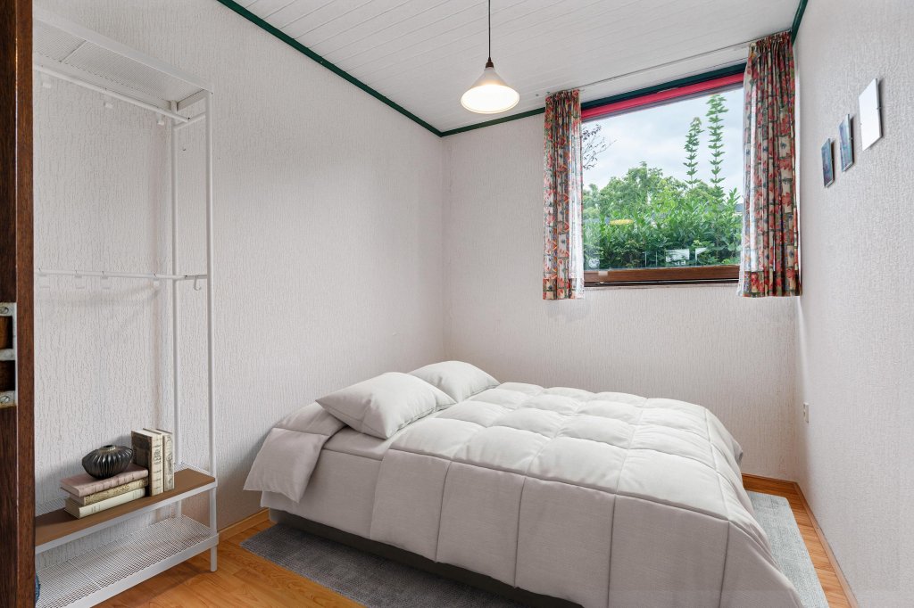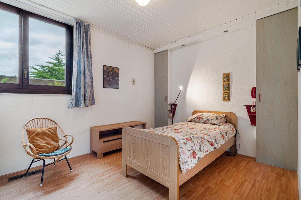 De badkamer is deels betegeld en beschikt over een ligbad met douchekop, dubbele wastafel, een tweede toilet en een raam in het plafond dat voor extra daglicht zorgt. De vier slaapkamers zijn praktisch ingedeeld en bieden volop mogelijkheden, bijvoorbeeld voor een logeerkamer, kantoor of hobbyruimte.