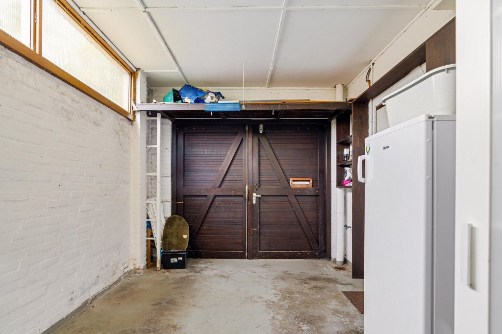 De garage, die via de eerste hal bereikbaar is, beschikt over een vriesaansluiting en heeft tevens een deur naar de achtertuin.