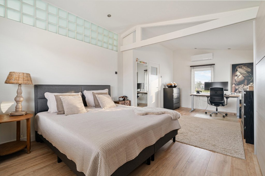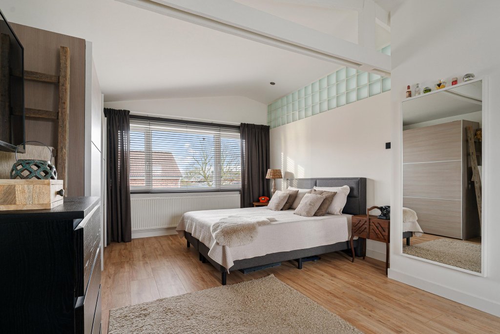 - Slaapkamer (voormalige 2 slaapkamers) is voorzien van een airco en laminaatvloer.