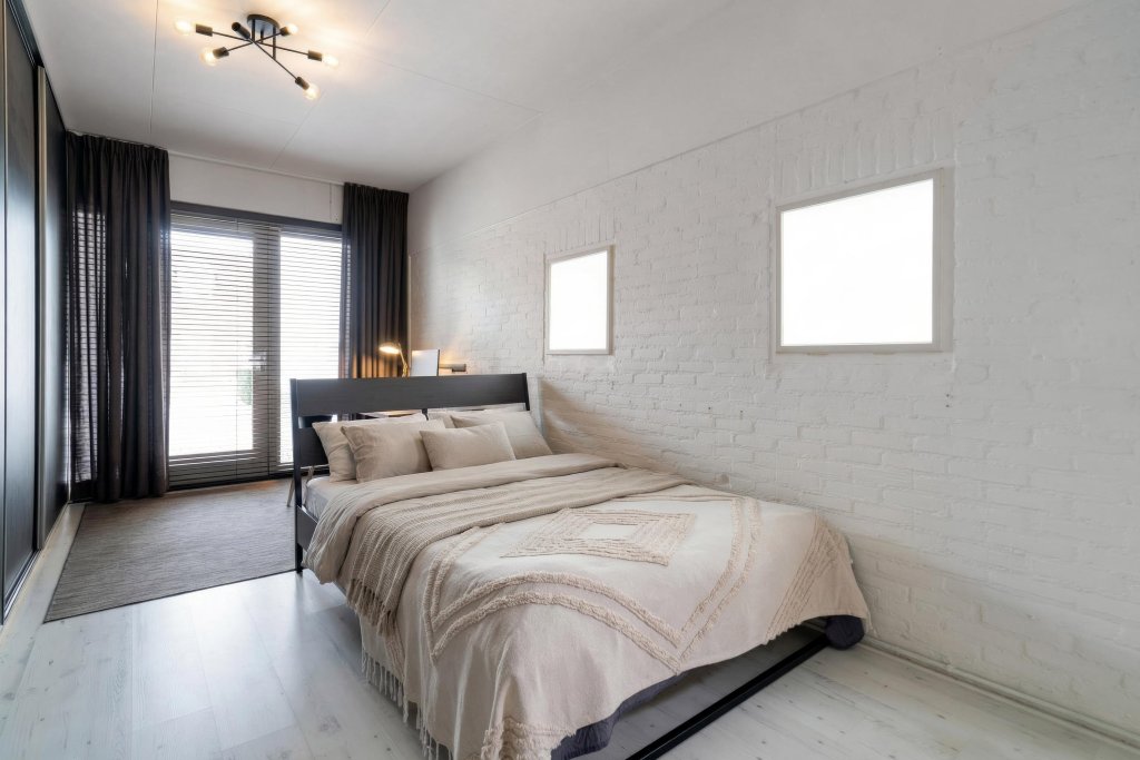- Slaapkamer gestuct en nieuw kozijn/glas voorraam en zijraam, vensterbank en nieuwe vloer;