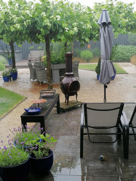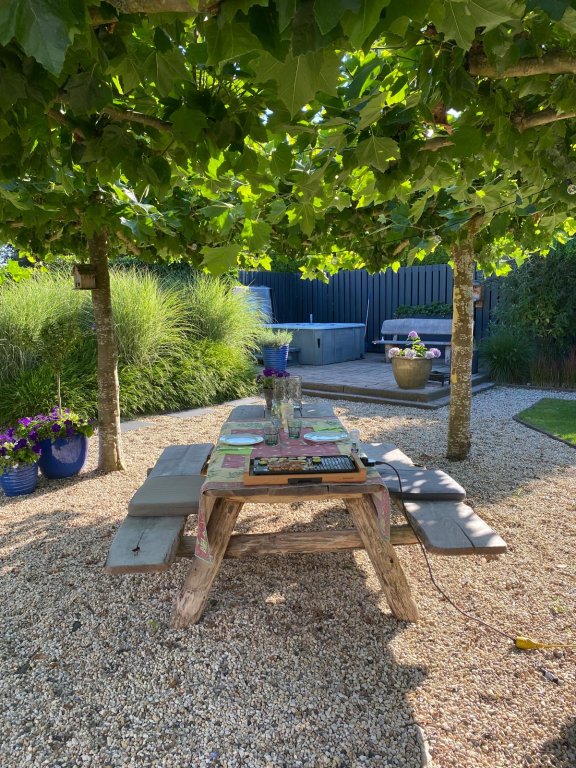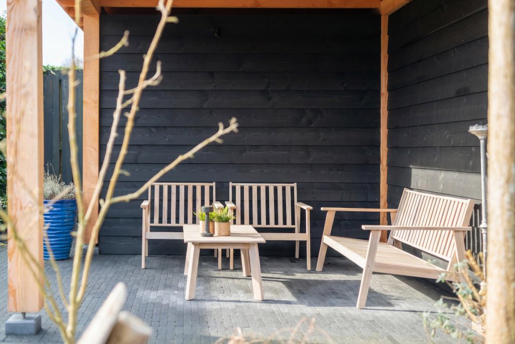 - Overkapping bij jacuzzi afgewerkt met Douglas hout;