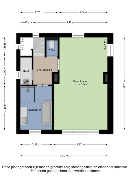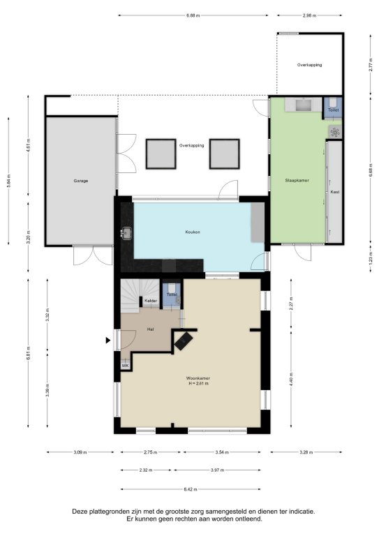 Alle door ons kantoor verstrekte informatie omtrent onroerende zaken, moet beschouwd worden als een uitnodiging om in onderhandeling te treden, en is geheel vrijblijvend! Alle vermelde maten en afmetingen zijn slechts bij benadering. Aan deze beperkte informatie kunnen geen rechten worden ontleend. Indien in enige documentatie of op enige website informatie staat die niet overeen komt met de werkelijkheid, dan geldt de feitelijke situatie waarin de woning zich bevindt, zoals koper deze tijdens de bezichtiging heeft kunnen waarnemen, en wordt de woning in deze feitelijke situatie/staat verkocht. Een (eventueel) bijgevoegde plattegrond dient uitsluitend als globale indicatie/visualisatie. Hieraan kunnen uitdrukkelijk geen rechten worden ontleend.