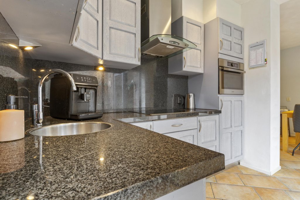 In de aanbouw is de keuken gesitueerd, de keuken in hoekopstelling is praktisch ingericht en voorzien van diverse inbouwapparatuur, waaronder een vaatwasser, koelkast, afzuigkap, combi-oven en keramische kookplaat. Vanuit de keuken is er directe toegang tot de tuin en de overkapping – ideaal voor zomerse dagen.