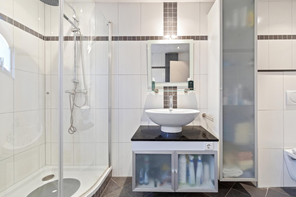 De luxe badkamer (2005) is een echte eyecatcher en compleet uitgerust met een hoekbad met whirlpoolfunctie, een douchecabine, wastafel met meubel en toilet. Comfort en ontspanning staan hier centraal.