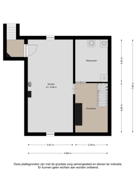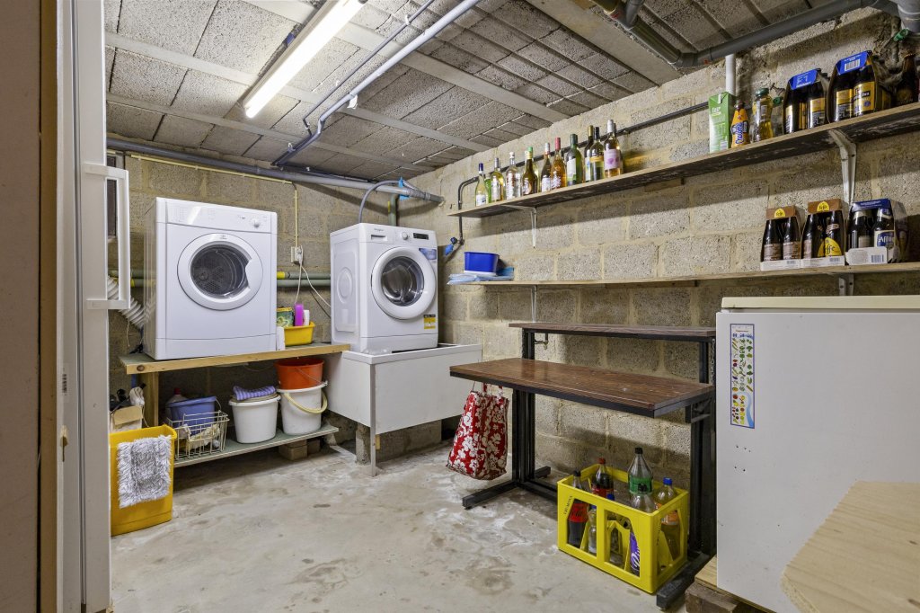Een absolute meerwaarde van deze woning is het ruime souterrain, verdeeld in drie functionele ruimtes. Hier vind je onder andere de wasruimte met aansluitingen voor wasmachine en droger. De grootste ruimte beschikt over de c.v.-opstelling en heeft via een trap directe toegang tot de achtertuin. Perfect als berging, hobbyruimte of extra opslag.