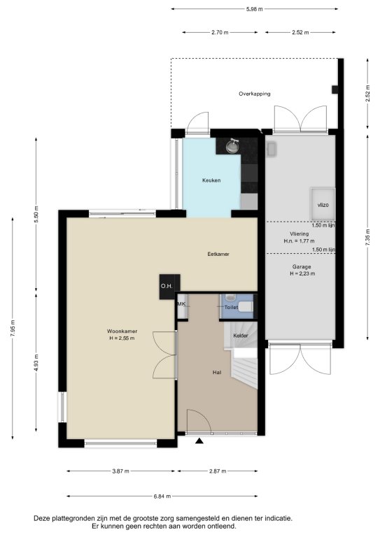 Alle door ons kantoor verstrekte informatie omtrent onroerende zaken, moet beschouwd worden als een uitnodiging om in onderhandeling te treden, en is geheel vrijblijvend! Alle vermelde maten en afmetingen zijn slechts bij benadering. Aan deze beperkte informatie kunnen geen rechten worden ontleend. Indien in enige documentatie of op enige website informatie staat die niet overeen komt met de werkelijkheid, dan geldt de feitelijke situatie waarin de woning zich bevindt, zoals koper deze tijdens de bezichtiging heeft kunnen waarnemen, en wordt de woning in deze feitelijke situatie/staat verkocht. Een (eventueel) bijgevoegde plattegrond dient uitsluitend als globale indicatie/visualisatie. Hieraan kunnen uitdrukkelijk geen rechten worden ontleend.