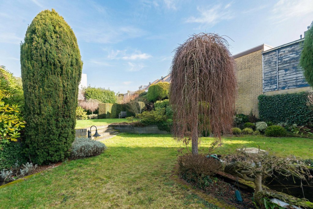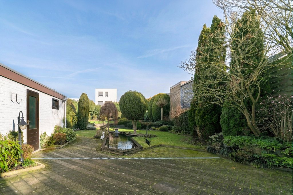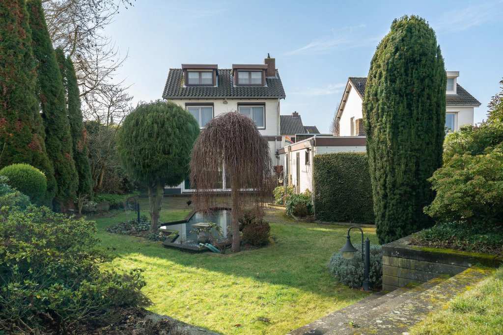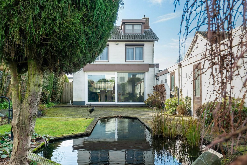 De woning beschikt over een verzorgde, groene voor- en achtertuin. De achtertuin is ingericht met een diverse terrassen, gazon en een sfeervolle vijverpartij, waardoor u hier in alle rust kunt genieten van het buitenleven.